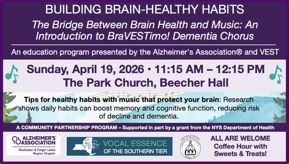 Offered by: An education program presented by Alzheimer's Association® -Rochester & Finger Lakes Region Chapter and VEST (Vocal Essence of the Southern Tier)